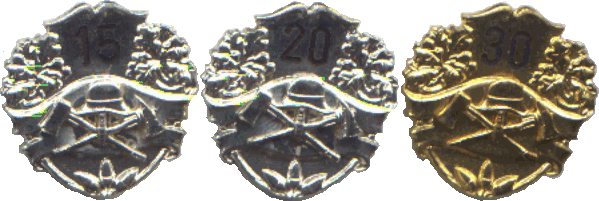 3 Anstecker mit Pin-Verschluß. Den Jahreszahlen nach ein Ehrenzeichen für Dienstjahre. Wer vergibt diese? |