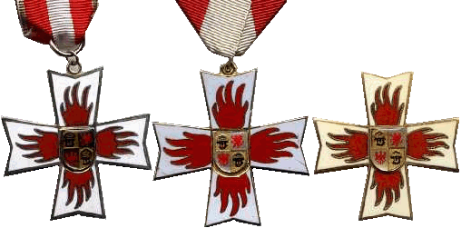 | Stufe 4: | besonders mutiges und entschlossenes Verhalten im Feuerwehreinsatz oder für besondere Verdienste um das Brandschutzwesen als Steckkreuz der Sonderstufe | |