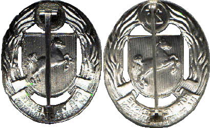 1994 wurde die Ausführung leicht geändert. Während die erste Ausführung stark glänzte, fast plastikartig, ist die zweite deutlich matter. Einfachstes Unterscheidungsmerkmal ist aber die Nadel. Während die erste Ausführung ein ungesichertes Schließsystem hatte, besitzt die Ausführung ab 1994 eine Sicherung. |