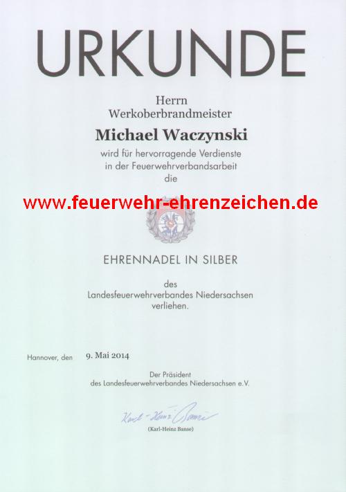 | Quellen: | Richtlinie für die Verleihung von Ehrennadeln, Ehrenzeichen und sonstigen Ehrengaben vom 30.05.1992 Richtlinie des Landesfeuerwehrverbandes Niedersachsen e.V. für die Verleihung der Ehrennadel in Bronze vom 29.05.2010 LFV-Einzel-Rundschreiben 2010/79 |