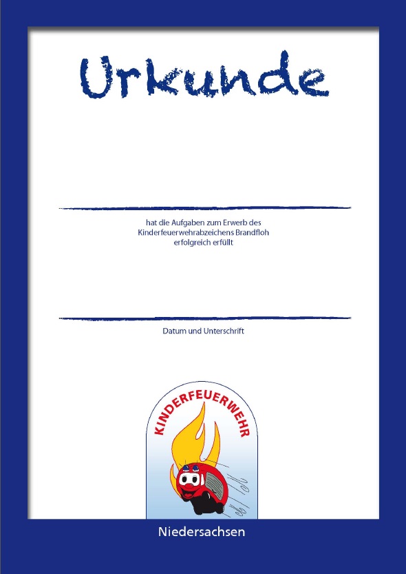Quellen:  Richtlinie für die Erlangung des Kinderfeuerwehrabzeichens Brandfloh der niedersächsischen Jugendfeuerwehr e. V. vom 19.09.2014