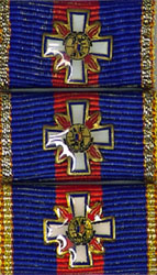 | Band: | rot mit blauer Einfassung, bei der Stufe Silber zusätzlich silberne Webkanten | |