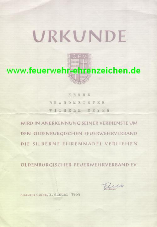 | Gold, wird verliehen: | - | Ehrenmitgliedern des Oldenburgischen Feuerwehrverbandes | |
